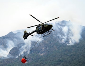Helicopters with Bambi buckets are dropping water on fire lines the Cajas Mountains 24 hours a day.