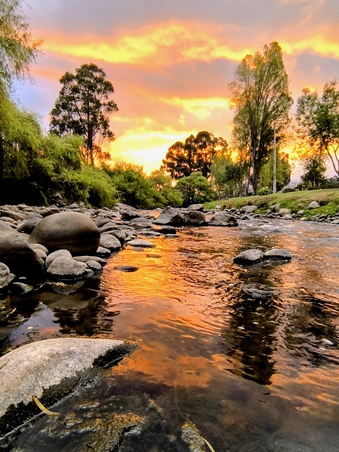 The sun sets over the Yanuncay River. The water in Cuenca is considered the best in Ecuador.