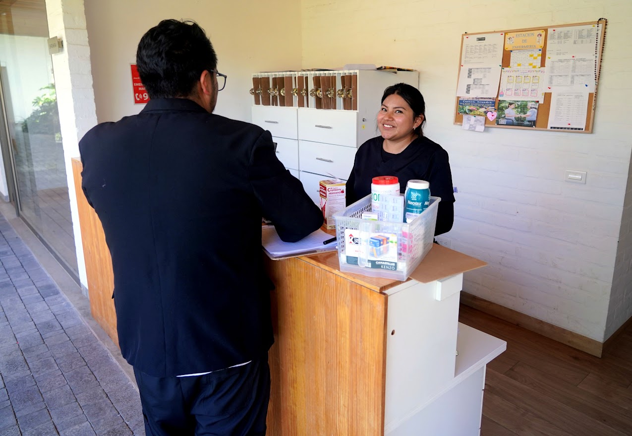 Rioquinto has a staff of 29 to 30 people. Sixteen are nurses. They have a nutritionist, psychologist, occupational therapist, physical therapist, and social worker. The rest are in supportive roles in the kitchen and general services.