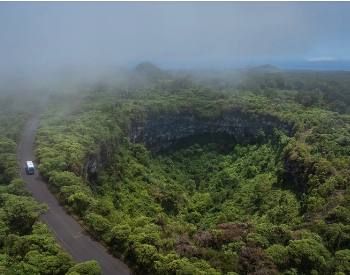 A view of one of the two volcanic craters known as Los Gemelos on Santa Cruz.