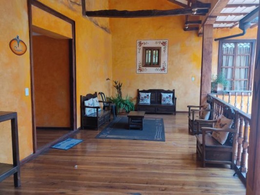 Partially – furnished with a rustic elegance, the tiled interior courtyard equipped with decorative fountain, exposed wood support beams and locally handcrafted tables, chairs and benches add to the old world charm.
