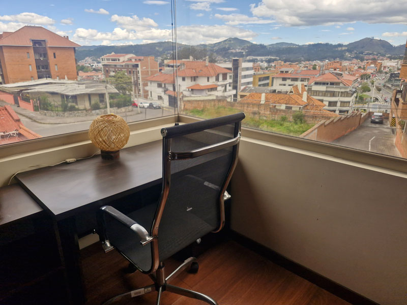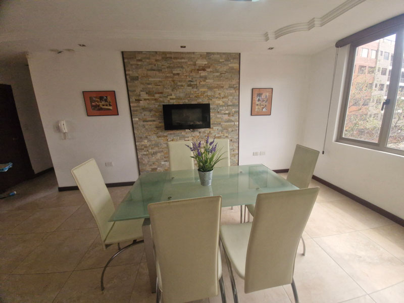 Light bright apartment with fantastic views. Sold totally furnished, just unpack you bags. Quiet neighborhood, 1 block from Tramvia, close to restaurant and bakery. 93 sq mtrs inside plus 20 sq mtr enclosed balcony outside. Includes 2 bed-rooms, living-room, dining-room and balcony furniture. Also washing maching, dryer, dishwasher, stove and oven. Underground parking space and bodega. Electric and water for approx 40 per month. Alicuota 115.00 per month. Guard 24/7. Price 145 000.
