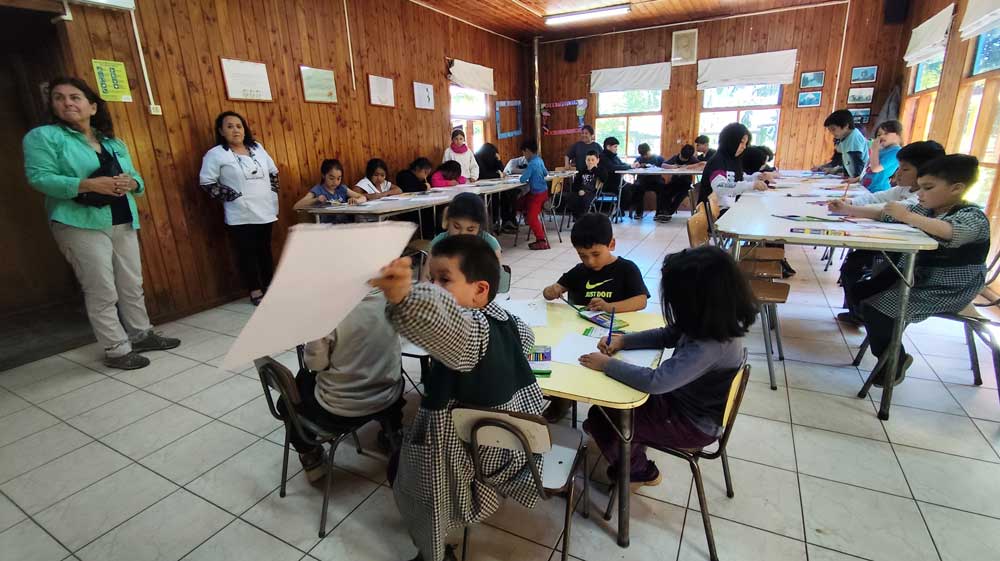 This week we witnessed the positive energy of thirty-six students as they drew and painted at a school in Chile. With their “wonderful hands” they made the shape of a giraffe, drew it and painted it. It was a pleasure to see how they concentrated and couldn’t stop coloring their drawings! They found that space where you forget everything and enjoy the colors, the possibility of creating something unique.