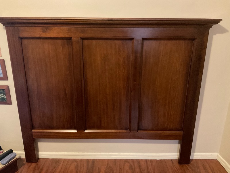 Custom-made solid hardwood headboard with an extra-tall design for a bold, modern aesthetic.