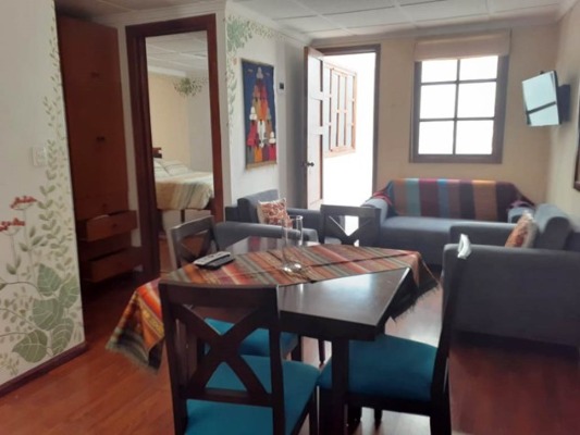 Located six blocks from Parque Calderon, this tastefully restored building has ten apartments, 6 suites and 4 bedrooms on an area of 2152sq/ft. The building has several common areas, including a kitchen and dining area to serve the one-bedroom units, a large living room with high ceilings great to enjoy the environment of a colonial house. The 6 suites for the ones that like more privacy have their own kitchen, living/dining room area. It has two outside patios and a great terrace on the only apartment on the 3rd floor. All furnishings, including televisions, linens, house wares, and appliances. Rental includes all utilities and Fiber optic Internet. There is also a common laundry area with washer and dryer. For mature tenants only. No pets and no smoking including in outside terrace areas.