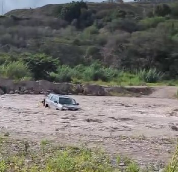 Southeast of Cuenca, firefighters and residents of Santa Isabel rescued the driver of an SUV who attempted to cross the Rio Rircay.