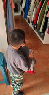 I joked, “Well, no one’s donated men’s clothes recently, so no fresh outfits for me!”