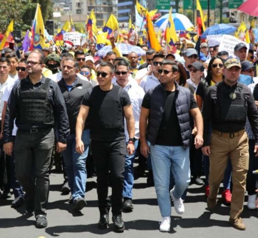 Claiming the court was interfering with “laws to combat criminal elements,” Noboa insisted that priority must be given to law enforcement. “Our police and military feel unprotected and abandoned by a Constitutional Court that has decided to turn its back on them,” he said. “We are here with the people fighting against corruption.”