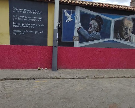 Following the wall you will see a mural with retratos (portraits) of the aged paintings of la naturaleza Further along the street are other murals portraying children’s games and activities.
