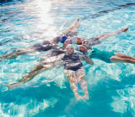 Members of a senior synchronized swimming team pose during practice in Sun City, Arizona.