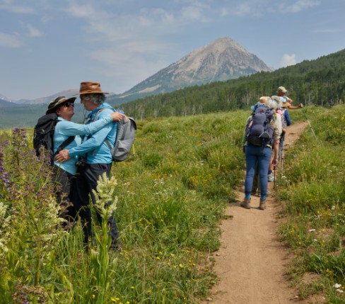 Hikers enjoy Spring colors at the Crested Butte Wildflower Festival in Colorado.