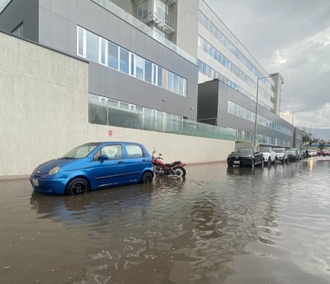 Tuesday’s rain flooded a parking lot at a Cuenca hospital.