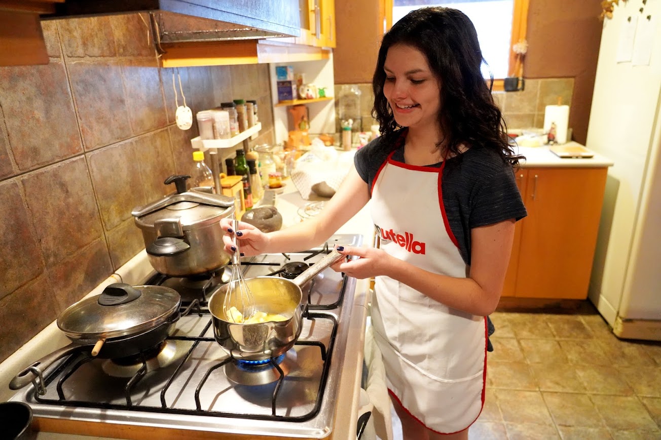 Ana Maria Carrión melting butter for the dough.