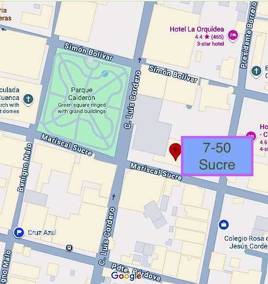 Address: 7-50 Mariscal Sucre, between Luis Cordero and Presidente Borrero.