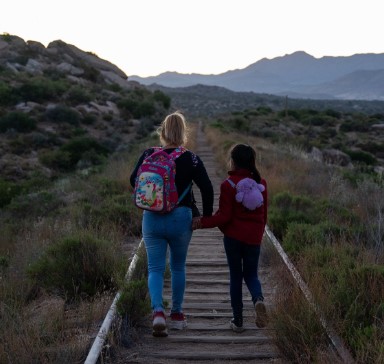 A mother and daughter cross into U.S. from Mexico through an abandoned railroad on June 28 in Jacumba Hot Springs, near San Diego, California.