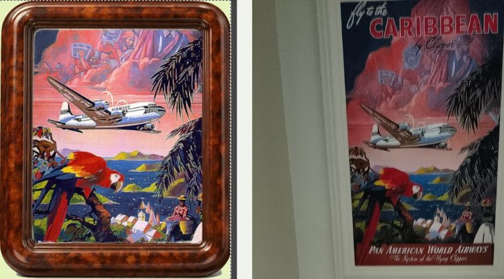 While all this was going on, I also created what turned out to be a separate small miracle. I saved some pictures and placed them in virtual frames, one of which contained a beautiful old Jamaica-themed Pan Am poster, the sort of thing you imagine hanging in the office of a 1950s airline executive who drank martinis for breakfast and made phone calls on a Bakelite phone with a cigarette between his lips. I framed it digitally in a tortoiseshell frame–probably not sourced in the Galápagos–and I WhatsApped it to a friend in Ireland, a friend I have known for fifty years and not physically seen in thirty, expecting a polite response along the lines of “very nice” or “what is this computer witchcraft.”