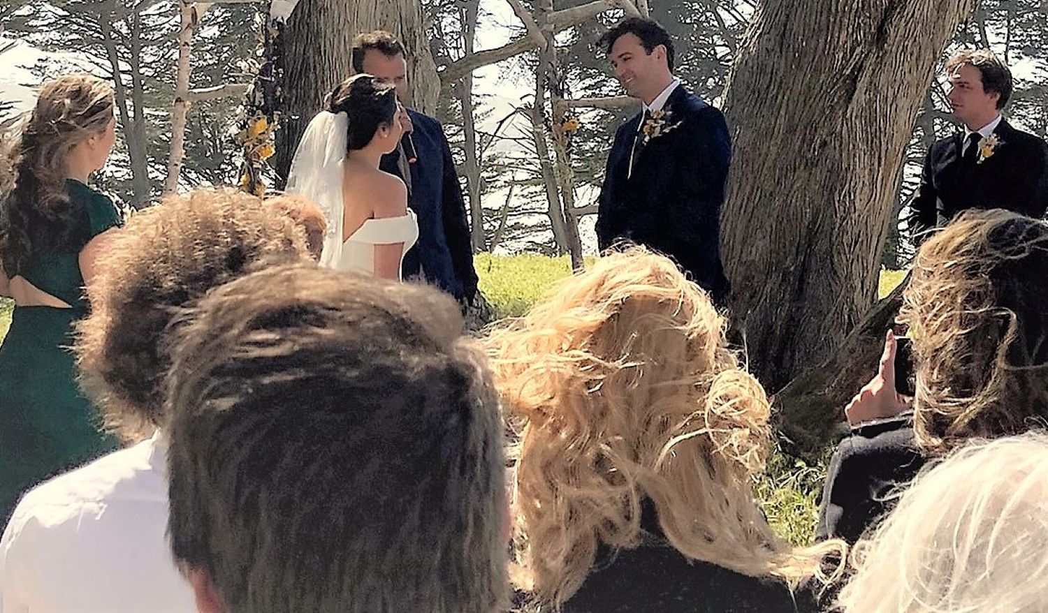 Wedding ceremony of Debra and Matthew in Marshall, CA.