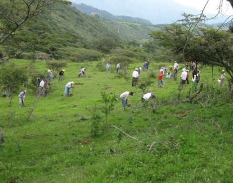 The local community working to reforest the Pisaca reserve. Photograph: José Romero